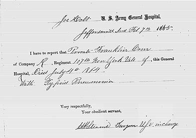 Franklin died in a Military Hospital in